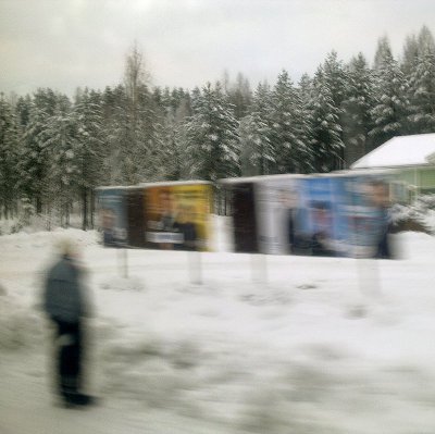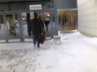 let.fi - 2012/01/15 - Ilta-Sanomien presidenttigallup on täyttä humpuukia. Kaikki tulokset on esitelty röyhkeästi väärin. Virhemarginaalit on unohdettu. 14.01.2012. -24 kuvaa. Lunta, taidetta, rompetta, vaaleja ja koirantossut. Kuvia lauantaina 2012-01-14 klo 11-15. Keski-Suomi. Jyväskylä. Tourujoki - Rajakatu - Harjukatu - Paviljonki - Irish Bar - Aalto-sali - Våinönkatu. 1. Tourujoki on jäätynyt. 2. "Liskopatsas", Kari Alonen, ammattikorkeakoulun jaAlvar Aallon suunnitteleman ensimmäisen (?) asuinkerrostalon kupeessa. 3. Kauppamiesten näköispatsas. 4. Harjun kioski on muuttunut kioski "55":ksi koulukompleksin vierellä. 5. Jyväskylän Paviljonki ja korkeutensa saavuttanut Sokos-hotelli. 6. Sisään.7. Teuvo Hakkarainen hymyilee aulassa keskustelun välistä, pyynnöstä. 8. Rompepäivät vetävät väkeä niin, että on erehtyä sinne. 9. Toimi Kankaanniemikin on saapunut Timo Soinin puhetilaisuuteen. 10. Yleisön joukossa on julkinen Pekka Haaviston, "kakkosen", kannattaja. 11. Pieni kuulija ei innostu Soinin puheesta, jossa tämä mm. kertoo menettäneensä ulkoministerin tai valtiovarainministerin paikan pitäessään kiinni periaatteistaan. 12. Pentti Varkila soittaa huuliharpullaan "Finlandian" tilaisuuden alussa. Soini istuu ja Anitta Kangas seisoo. Paikalla on varmaankin parisataa kuulijaa, kun nonstop-kävijätkin lasketaan mukaan. 13. Paviljongin yläaulassa kahvittelusta tullessa törmää Jaakko Valon vuonna 2006 valmistuneeseen "Kulta-aikaan", vaneri, akryyliväri ja lyöntikulta.14. Rompetorilta Isä on löytänyt kaipaamansa pakoputken. 15. Irish Barin lämpöisessä tunnelmasssa voi vain muistella, kuinka lämmintä ulkoterassillakin kerran kesällä oli kun siellä nyt talven viima puhaltelee. 16. OHOH- ILTASANOMAT repäisee ainakin kunnon otsikot, kun se taas kiihdyksissään unohtaa "tutkimuksen" virhemarginaalit! 17. Paavo Lipposen vaalimainokset lumessa Aalto-saliin houkuttelemassa. 18. "On the Sunny Side of the Street" vain soluu taitureiden esittämänä, pianisti Marian Petrescu ja basisti Mihai Petrescu. Sali on täynnä, ylhäällä parvella on kyllä hyvin tilaa myöhästyneellekin. 19. Puolueen puheenjohtaja, valtiovarainministeri Jutta Urpilainen kehuu Paavo Lipposta ja muistuttaa kuinka gallupit nujerrettiin viime eduskuntavaaleissa. "Tasavallan presidentin virka ei ole mikään ulkosuhteiden harjoittelupaikka". 20. Kahvia tarjoilemassa ihan samannäköinen nuori nainen, joka Asunnottomien yön iltatunneilla tarjoili hernekeittoa ulkona Kompassin nurkilla viime syksynä. 21. Kahvijonot. 22. Rompetorilta tai sitten muualta tullut sivuvaunuilija pyörähtää Väinönkadulla. 23. Pieni koira näkee toisen pienen koiran kadun aurinkoisella puolella. 24. Söpöliinille on laitettu töppöset jalkaan tässä kahdeksan asteen pakkasessa, joka tuntuu kovin kylmältä viimaisina hetkinä. - Mobikuvat: Pertti Manninen. - TOP 20 Joulukuu 2011  - Ylen mahdoton tulos. Gallup julkaistaan ikäänkuin ehdokkat eivät saisi 100 prosenttia hyväksytyistä äänistä! TÄNÄÄN ENNAKKOÄÄNESTYKSEN ALKAESSA YLEN RADION VAALIASIANTUNTIJA SAMI BORG KERTOO ... - KAUPPALEHDEN PARETSKOIN KOLUMNI.  - Sauli Niinistö, Paavo Lipponen, Paavo Arhinmäki. - Kuva.  Vaikea valinta. - 2012 Presidentínvaalit Ennustukset: Pressa 2012 ennustus lokakuun alussa. Pressa 2012 ennustus joulukuun alussa. - Kunnianloukkaussyyte käsitellään keskiviikkona 18.1.2012 klo 10.30 - Pertti Manninen, xxxxx xxxxxxx, xxxxx xxxa, Keski-Suomen käräjäoikeus - Presidentinvaalit 2012 - Julisteet tänään katukuvassa. Kuva: " 2, 3, 4, 5, 6, 7 tai joku muu". -  Kuvat. "01.01.2012". -  "The Jazzman" Kuva. - "Kiven hehku". Kari Alonen 2010. -- Lukijan kuva: "Katso tuolla on Hakkarainen!" - Kuva. Käden ojennus. Karuselli. - lsunnuntai 15.01.2012 - etusivu - Nettisanomat - Sanomanetti - Blogi: Viikkosanomat.fi - Kuvasanomat - Sanomatori  - Viikkosanomat - Härkää sarvista  Kari Allonen, Alvar Aalto, Jaakko Valo, Pentti Varkila, Anitta Kangas, Timo Soini, Pekka Haavisto, Paavo Lipponen, Jutta Urpilainen, Ilta-Sanomat, gallup,  Sami Borg, Paretskoi, Kauppalehti, Yle, Gallup, Presidenttiehdokkaat, julisteet,  katu. Uusi vuosi - saalis - siivet - Nilakka - hämärtyvä ilta. Kunnianloukkaus, Nettisanomat, päätoimittaja, xxxxx xxxxxxx, asianajaja, xxxxx xxxa, Nordea Pankki, myyntipäällikkö.